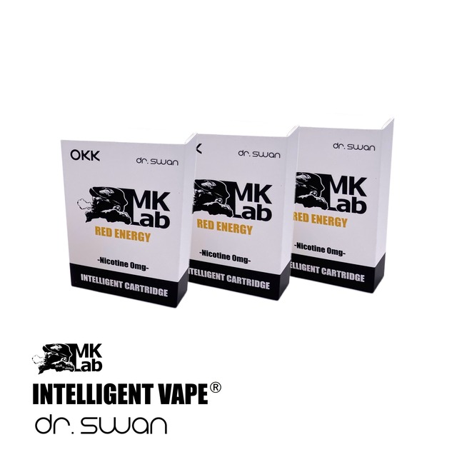 ドクタースワン インテリジェントカートリッジ ※カートリッジのみとなります。使用にはインテリジェントベイプ本体が必要になります。 フレーバー レッドエナジー(エナジードリンク味) カートリッジカラー ブラック カートリッジ 2個入り(中国製)x3箱 リキッド MK Lab製(日本製) 容量 1.8ml/1個 リキッド成分 植物性グリセリン、プロピレングリコール、香料 舌先から口の中へと広がるエナジードリンクのミストが喉にシャキッとくる清涼感を与えてくれる。最後にはラムネソーダの風味が鼻から抜けていく。フレーバーが2段階で来る感じが楽しめる。