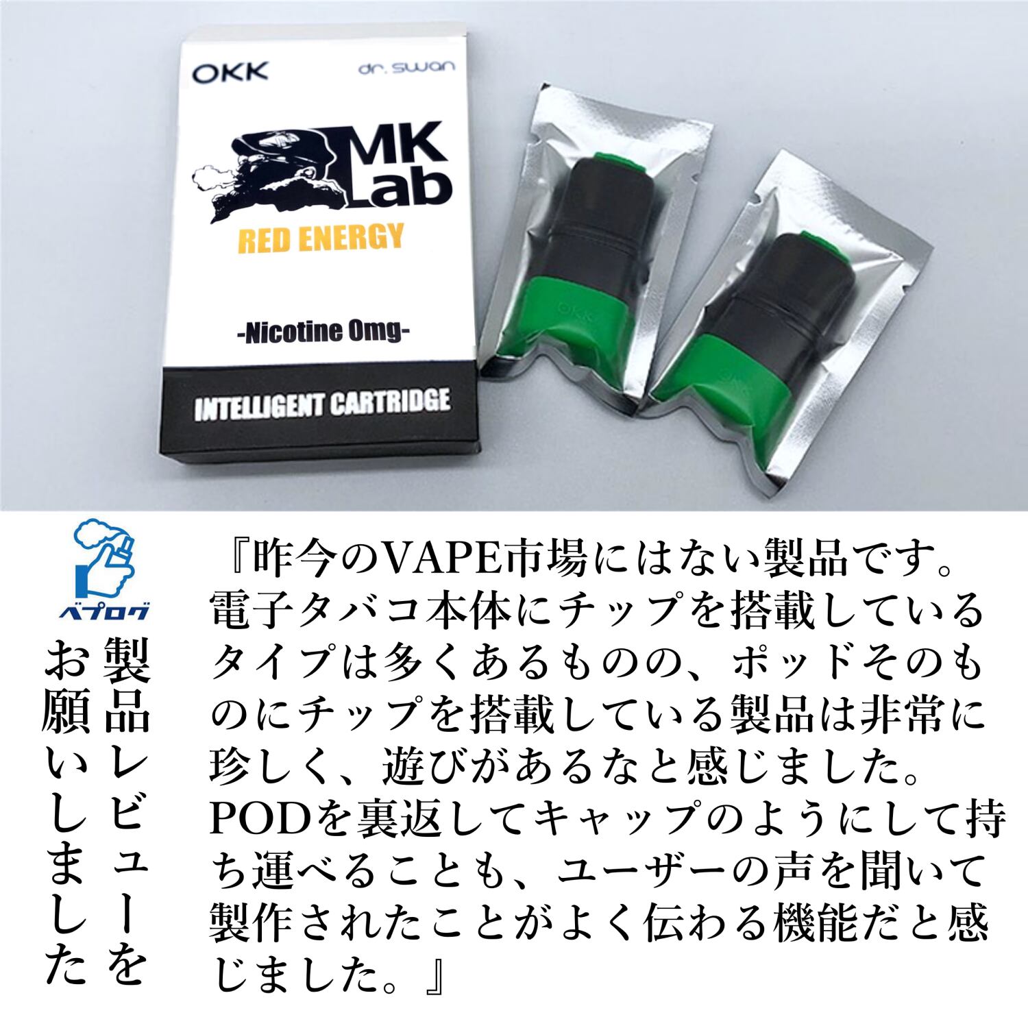 舌先から口の中へと広がるエナジードリンクのミストが喉にシャキッとくる清涼感を与えてくれる。最後にはラムネソーダの風味が鼻から抜けていく。フレーバーが2段階で来る感じが楽しめる。